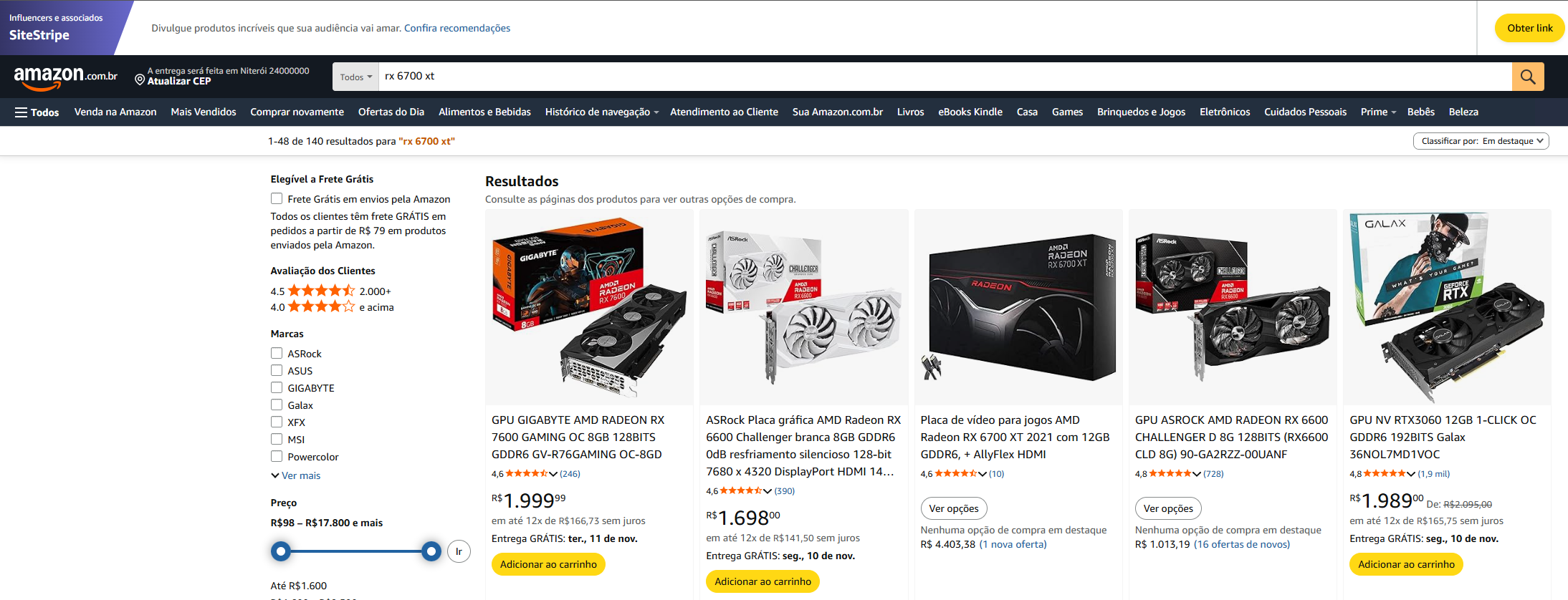 A Amazon é um dos principais vendedores da placa de vídeo XYZ, o que garante um processo de compra seguro e facilitado, além de possíveis promoções e frete grátis para membros Prime. Muitos usuários elogiam a rapidez na entrega e a facilidade de devolução caso o produto não atenda suas expectativas.